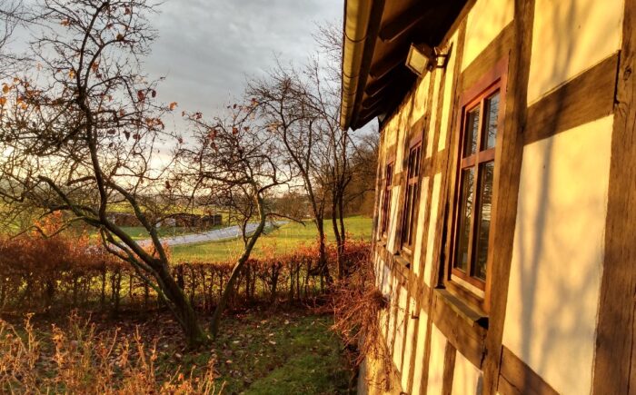 Freistehendes ehemaliges Bauernhaus, schönes Fachwerk, komplett liebevoll mit vielen Details restauriert, Süd-Giebel in Sandstein und Schiefer im Giebel, Thermodach, Innendämmung, Gewölbekeller mit eigenem Brunnen, Weinkeller, Streuobstwiese, Heizungskeller mit Holz -und Ölraum, Carport.